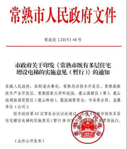 伴隨著人口老齡化,在本市一些建成10余年以上的老小區(qū)里,上下樓日益成為一些年老體弱群體的“重?fù)?dān)”和“煩惱”。為了解決老人上下樓難題,助力他們實(shí)現(xiàn)居家養(yǎng)老的愿望,常熟市人民政府結(jié)合本市實(shí)際,出臺(tái)了《常熟市既有多層住宅增設(shè)電梯的實(shí)施意見(暫行)》,并于2020年1月開始實(shí)行。